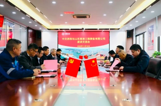 11月19日,山东高速工程装备有限公司党委委员、副总经理荣兴一行莅临西筑考察交流,中交西筑装备分公司党委书记王玄卫,中交西筑运营管理部总经理顾洪、供应链管理部副总经理陈俊宏等陪同,双方围绕产业合作事宜进行座谈交流。